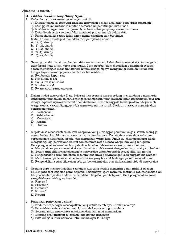 Dalam interaksi sosial harus ada kontak dan komunikasi sosial. Halo sahabat afnan alfaqih, berikut adalah soal usbn sma tahun pelajaran 2018/2019 mata pelajaran sosiologi. Latest and most complete edition of kumpulan soal dan pembahasan un dan usbn sosiologi sma ips digital book by mur ifatul miskiyah, . Soal ujian sekolah atau usbn sosiologi kelas xii pada tulisan ini, berbentuk pg dan essay sebanyak 40 soal (25 pg + 15 essay). Berikut ini adalah soal prediksi soal usbn mapel sosiologi kelas xii sma. Kunci jawaban ada di akhir soal . Lanjutan soal jawab latihan usbn sosiologi sma tahun 2018. 1= gubernur 2= bupati/walikota 3= camat berdasarkan bagan tersebut, maka latar belakang penyebab terbentuknya stratifikasi sosial adalah. Tentunya berbeda dengan soal usp/usbn sosiologi yang ada pada tulisan ini, karena semua soal yang ada, diambil dari soal tahun sebelumnya(2017/2018), sesuai . Kartu soal ujian sekolah berstandar nasional tahun pelajaran 2017/2018program studi mata pelajaran kelas kurikulum:.